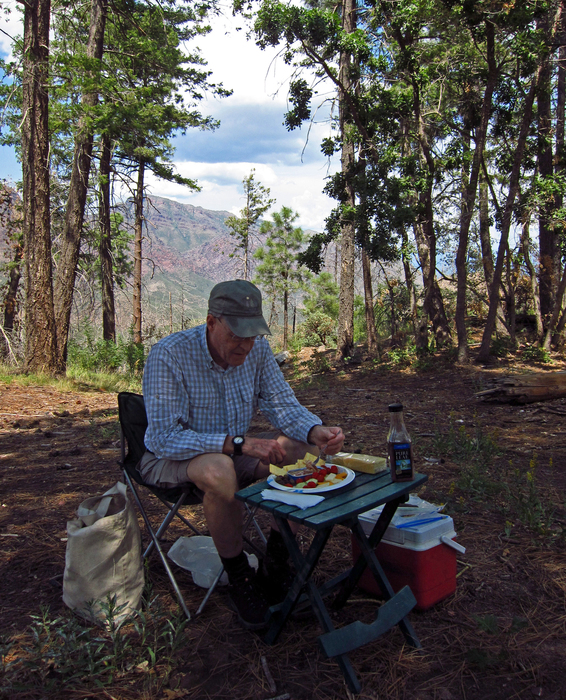 A quiet lunch of Smoked Trout and more under the cool Pines at ~6100 feet