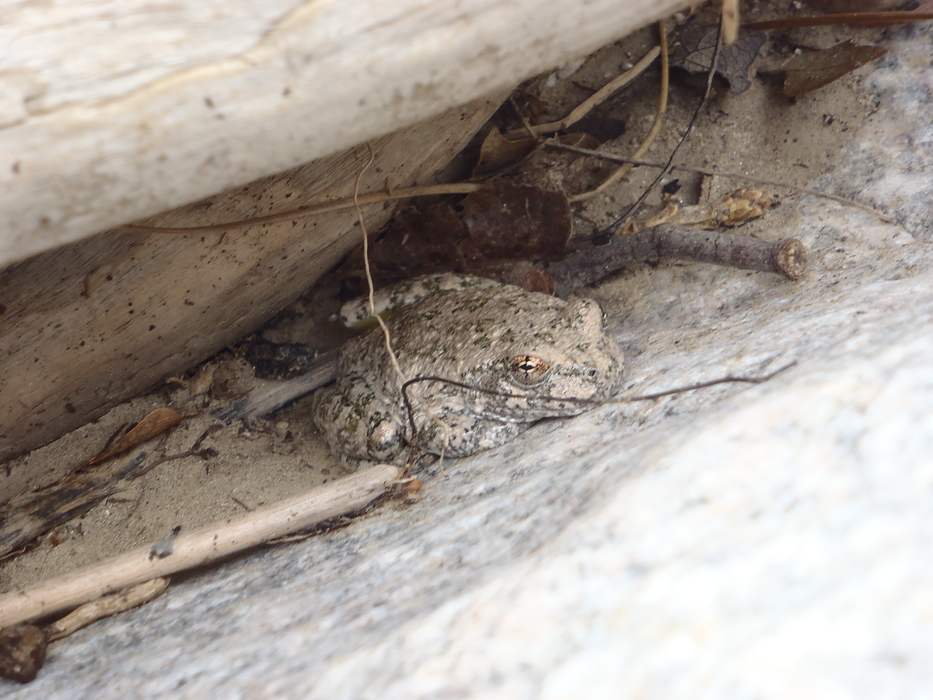 I remembered seeing tons of pictures of frogs in this spot, so I got down and thought to myself, "I still haven't seen any of these things? Where are they all hiding?" I then turned my head, looked in this crack, and this guy was just staring at me. I guess that's what I get when I just open my eyes!