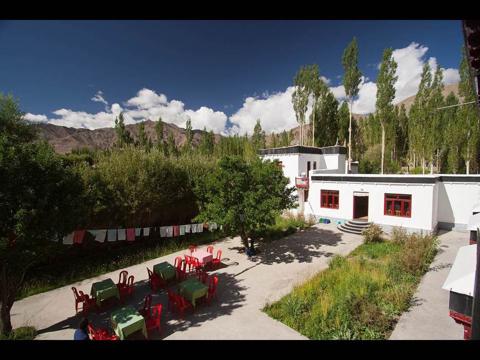 Hotel room view of the courtyard and dining room (and prayer flags)...