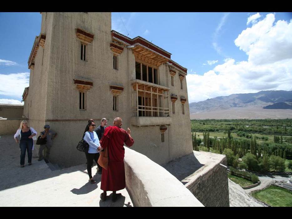 Lama Palden points out features at Shey Palace and Monestary...
