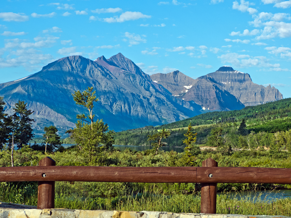 My drive to Belly River from the Rising Sun via Going to the Sun Road. This is the view from the bridge crossing of St Mary connector waterway. You are looking at Red Eagle Mountain, Mahtotopa Mountain, and Little Chief Mountain above St Mary Lake. I am looking to the southwest.