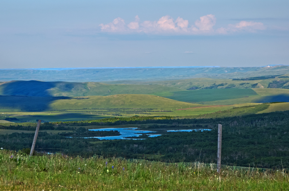 coming over the hill I was treated to this wonderful view of a pond and very green plains.