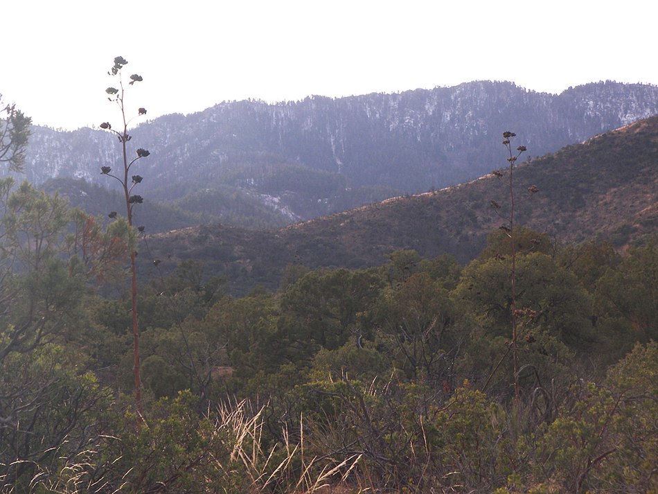 a 9000 foot, snow covered ridge, as seen from the Ladybug Trail