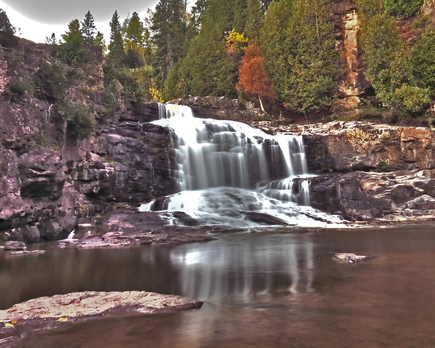 A 13-second exposure makes Lower Falls appear silky smooth in the near-dusk