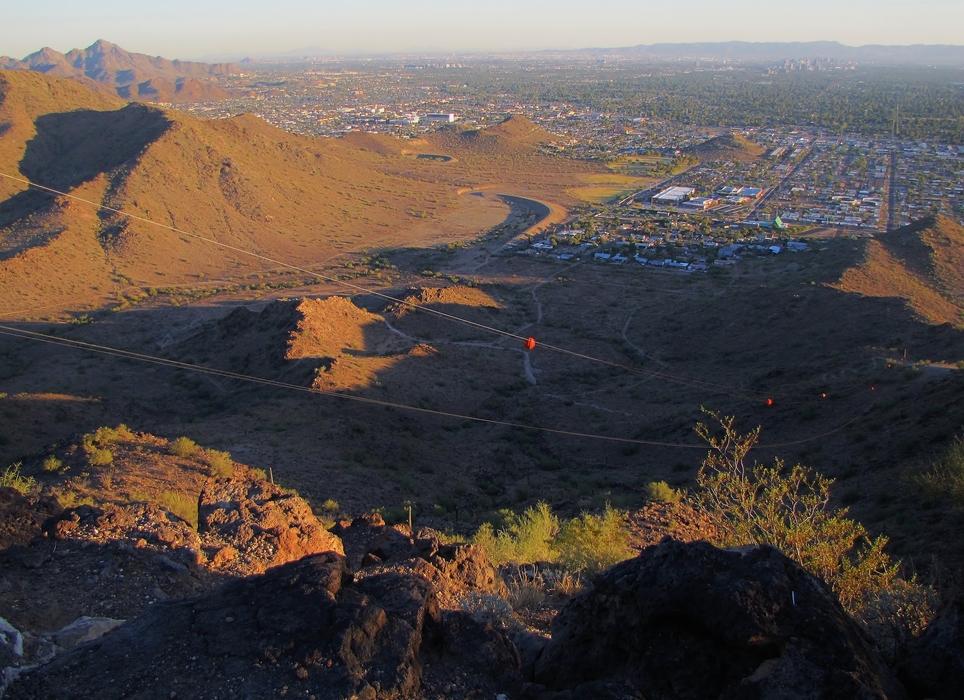 The South approach spreads out below with the Cloud Nine ruins (upper right).