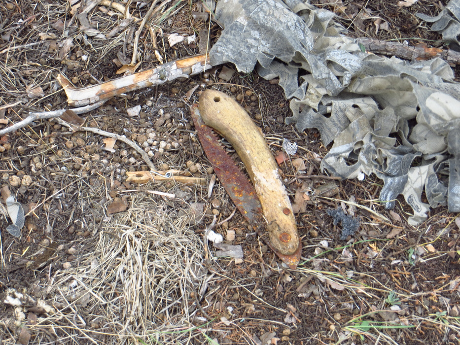 By the thickness of the rust on the blade of the saw it's been here for some time.