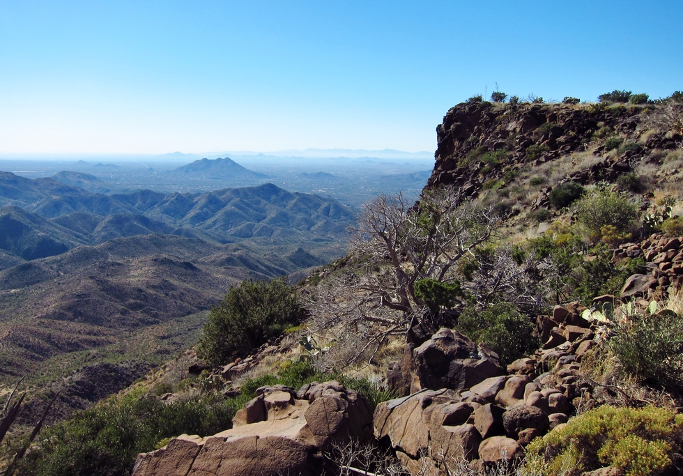 Feels good to get to the mesa edge. Looking back at Cave Creek.