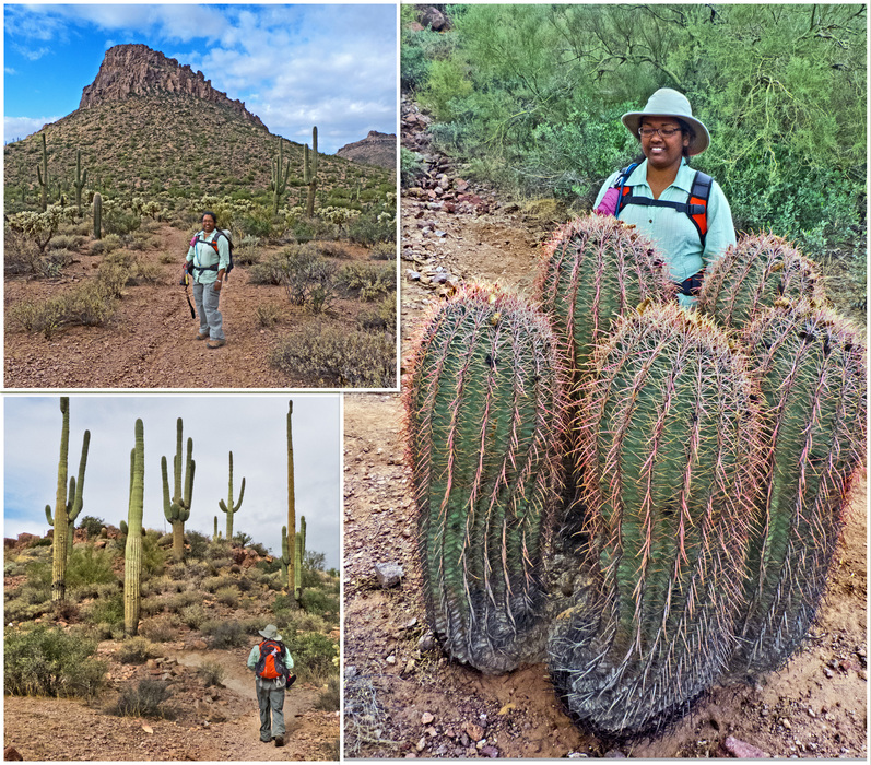 UL Ambika at east side of Turk's Head. Left photo is of the 5 cactus growing off one root. We are going to measure them when we can and used Ambika as the yardstick. They have grown quite a bit.
