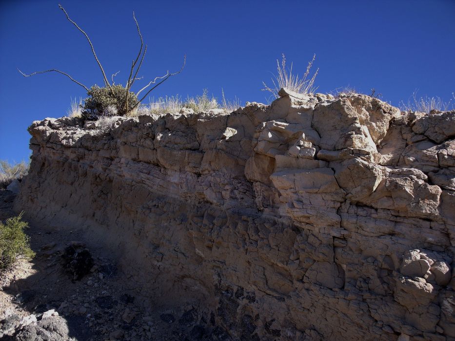 An exposed layer of calcium carbonate, called a calcic horizon. What chalk is made of (sometimes called caliche' ).