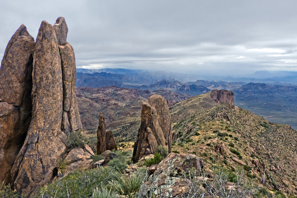 looking back at our route up and toward the Eastern Supes with Picketpost in far right background.