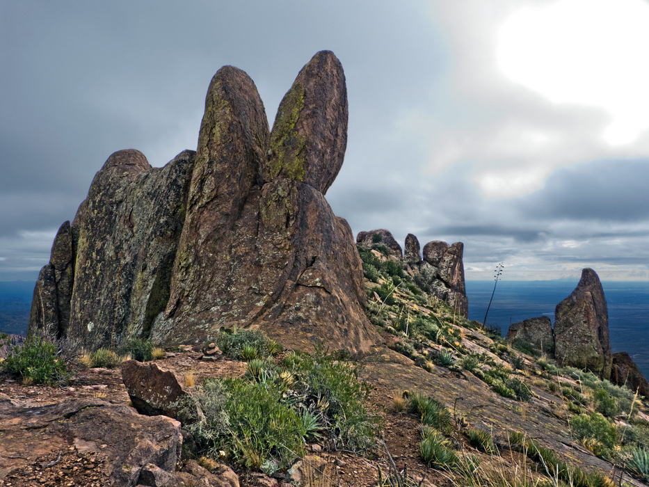 Ambika called this rock formation "rabbit ears". You can see the cairn below it so hang a left.