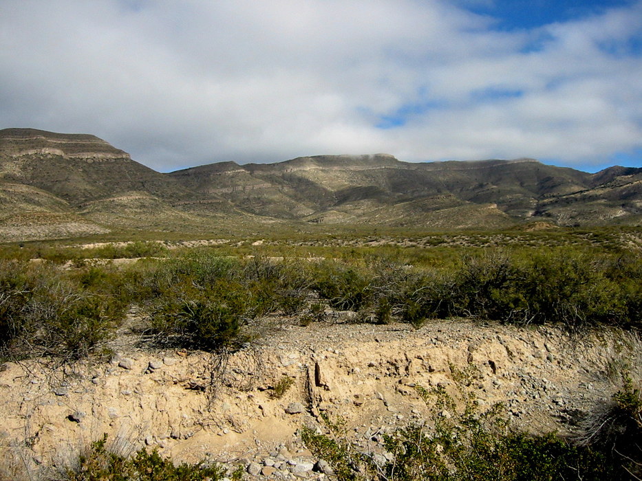Winter Peak in clouds in the center... a bit of sun hitting this canyon below and to the left...