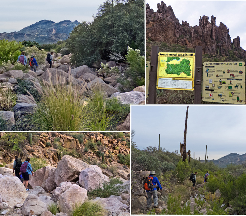 Photos on left are getting thru the lower part of the canyon. The LR is the bushwhack section and of course, UR is at the TH.