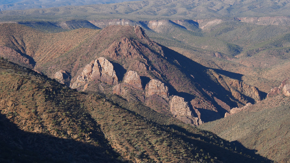 A last look at the Four Bars of the White Ledges in Jump Off Canyon below Buck Mtn. The Salt River is out of sight below these rock features.