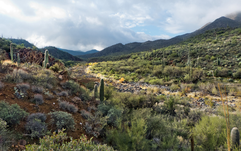 this is from our detour based on the Skull Mesa sign as we continued up FR 48. Don't do that if you're headed to 247 or 4. Keep walking east, not north. Anyway, even though we had to hike up hill, the view back on Cave Creek was pretty good.