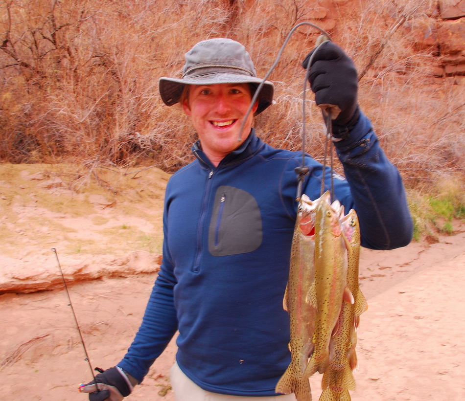Our 4 trout on an improvised stringer.