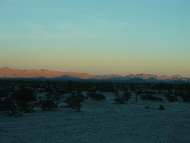 The shadows of the Tinajas Altas mountains rising up on the Cabeza Prietas.