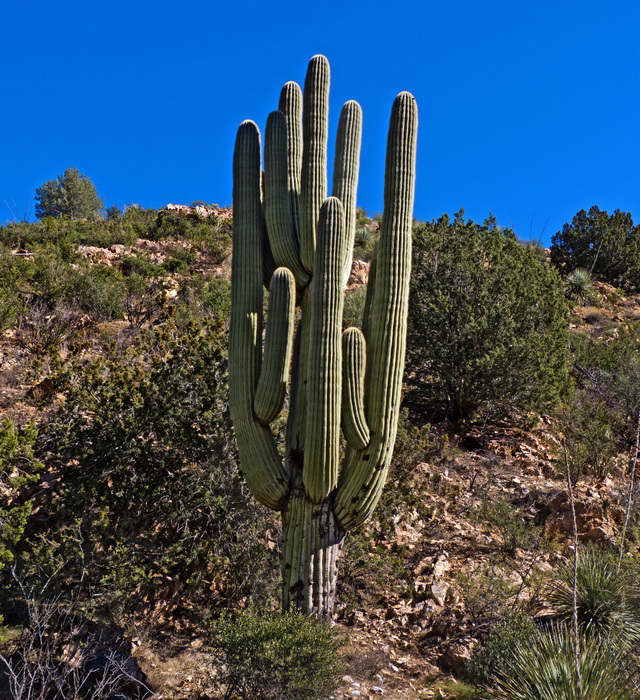 here is that saguaro above Mud Spring area. Sure has a short trunk.