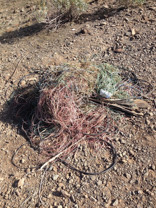 This is one of two piles of wire insulation I found on this trail. This is evidence that this trail doesn't get much use, if it give someone the time to strip this much stolen copper.