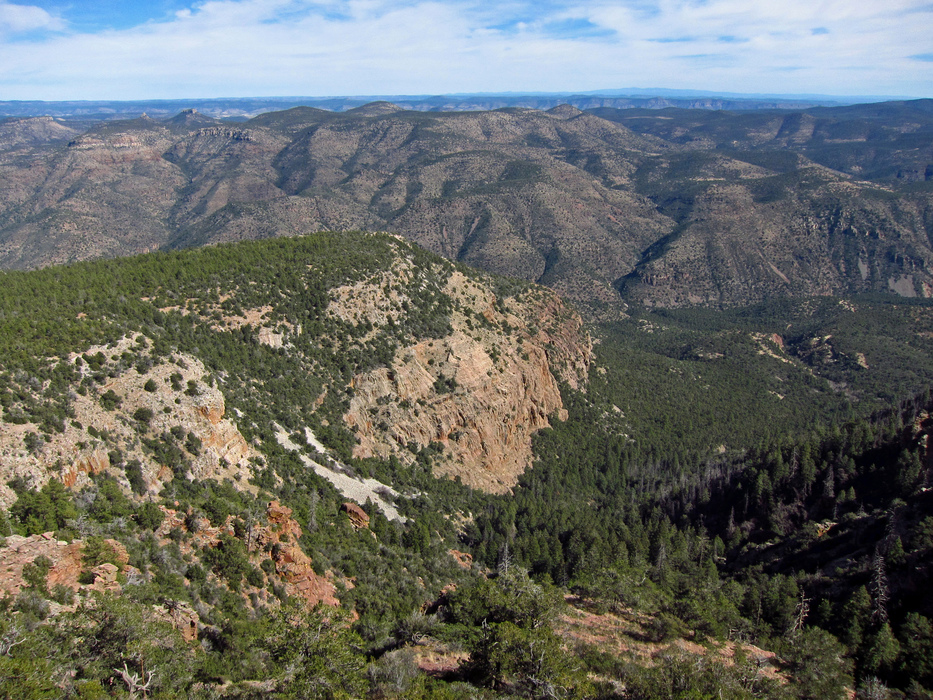 Views East across (not visible) North-South Sierra Ancha "Grapevine Trail #135" off Cherry Creek Road FR203.