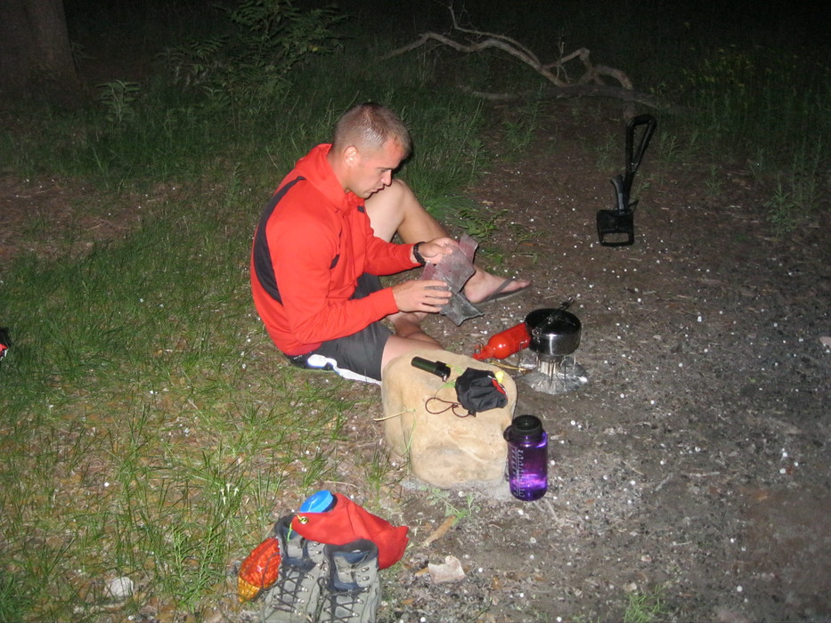 So why am I alone making cheese cake? Well I left guys at Plow Saddle to get early start on pumping water, dinner etc. However, long story short they took a wrong turn, had to be rescued by Jim, and they got back just after 11...oops