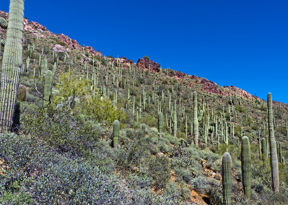 coming down the Prospector Trail this mountainside (Peak 3025?) was covered in saguaros.