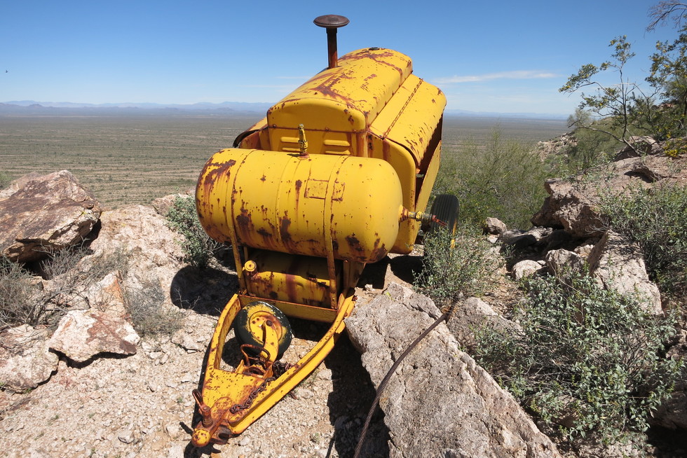 This air compressor is in really good shape considering its probably been there about 50 years. Everything is still intact: battery still conected, gauges not smashed, no bullet holes. Only thing missing is the radiator cap.