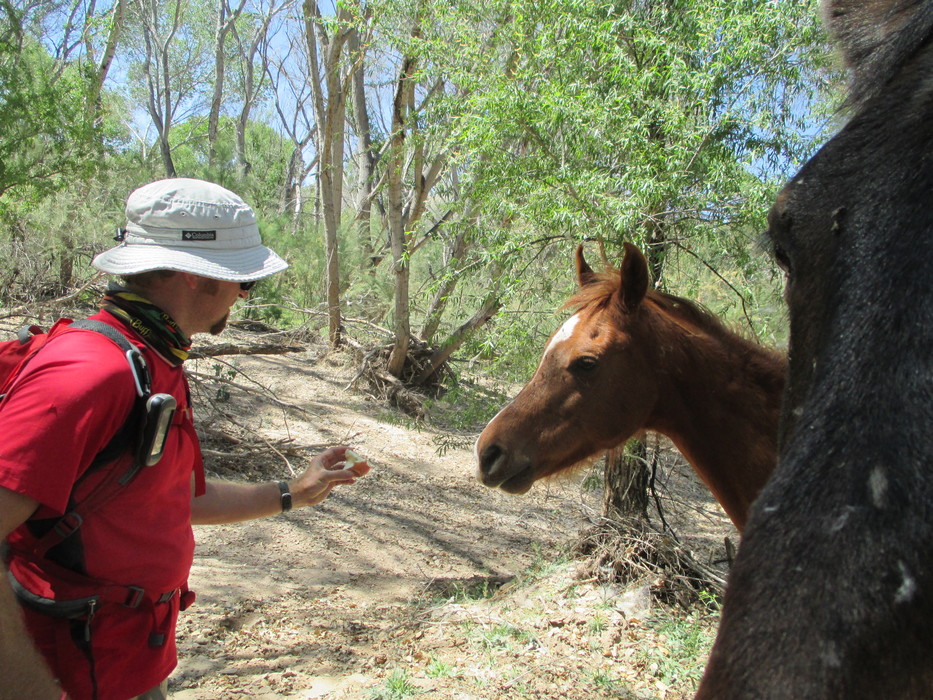He is feeding the brown one an apple and I am feeding the darker one spicy peanuts