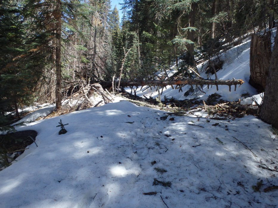 First of two dozen fallen trees along the upper sections of Ash Creek Trail.