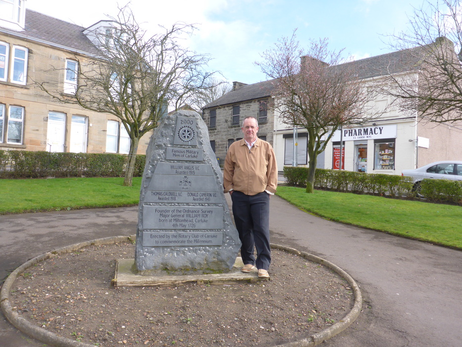 Rotary Club memorial for three distinguished Carluke soldiers: Thomas Caldwell VC, Donald Cameron VC and William Angus VC. Major General William Roy founded the Ordnance Survey, the British equivalent of the United States Geological Survey.