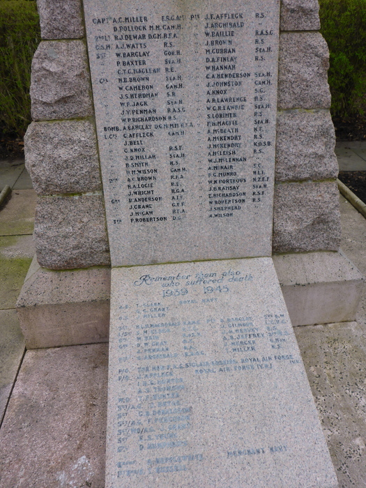 Memorial detail. The abbreviations after each name are for the unit the deceased was in: Cam.H. = Cameron Highlanders, Gor.H. = Gordon Highlanders, K.O.S.B. = Kings Own Scottish Borderers, etc. (Click "View Original", then zoom for detail.)