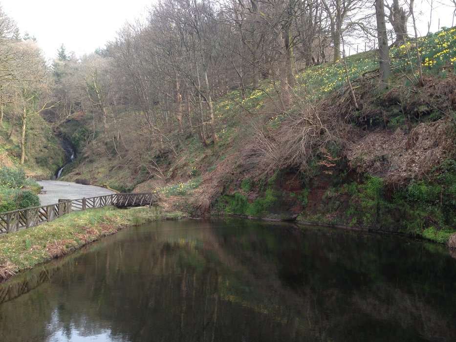 Spring fed pond behind the hospitality building. The spring no longer provides enough water, at this point, to support current production. So, they get the water from the same spring, but further up stream. No tap water.