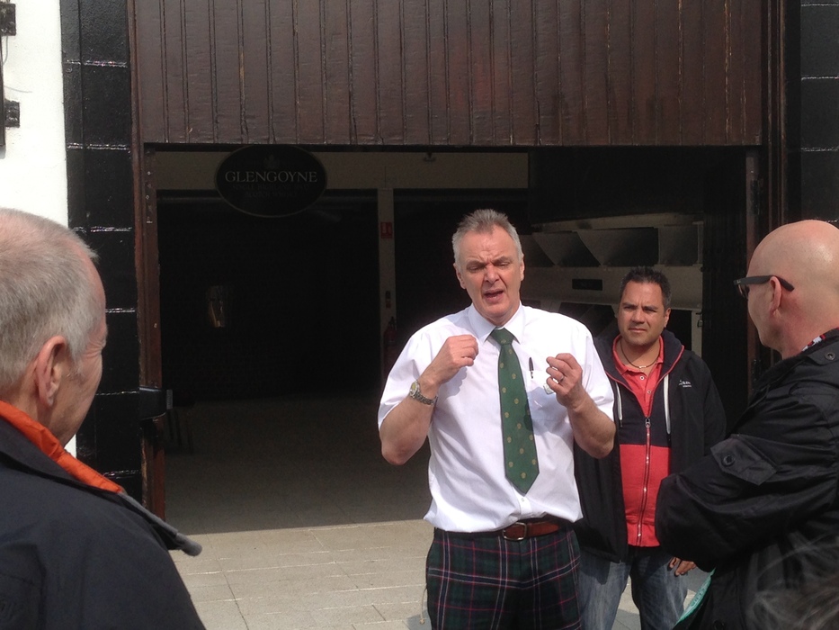 David the Tour Guide explaining the aromas associated with which age of Glengoyne whisky. After this we went in the distillation building, behind him, but therein pictures were not allowed. (Don't want distracted tourists hurting themselves around machinery or, worse yet, falling in a still, lending the next bottling an aroma of butt sweat.)