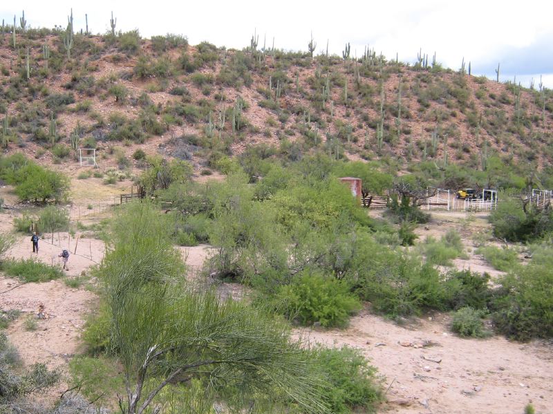 The corral as seen from the trail. The path up the far bank goes to the official trailhead
