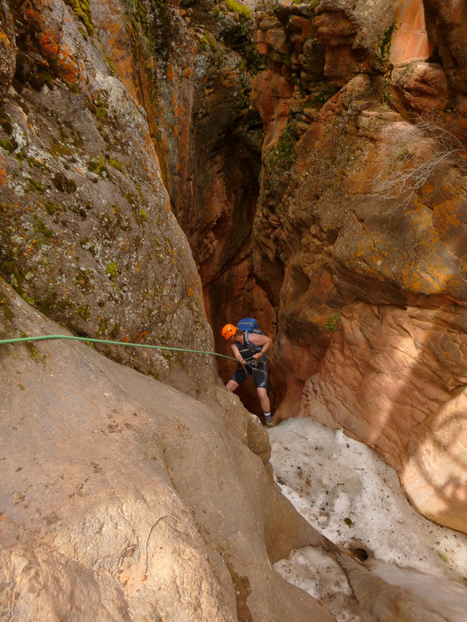 I have now run out of Dry Rock and have to step onto the Ice...C4 Rubber is a good thing, but it's kinda like having very expensive Tires on an Icy Road....This is probably the tensest Rappel I've done to this Point...I pretty much have a Death Grip going on the Rope....