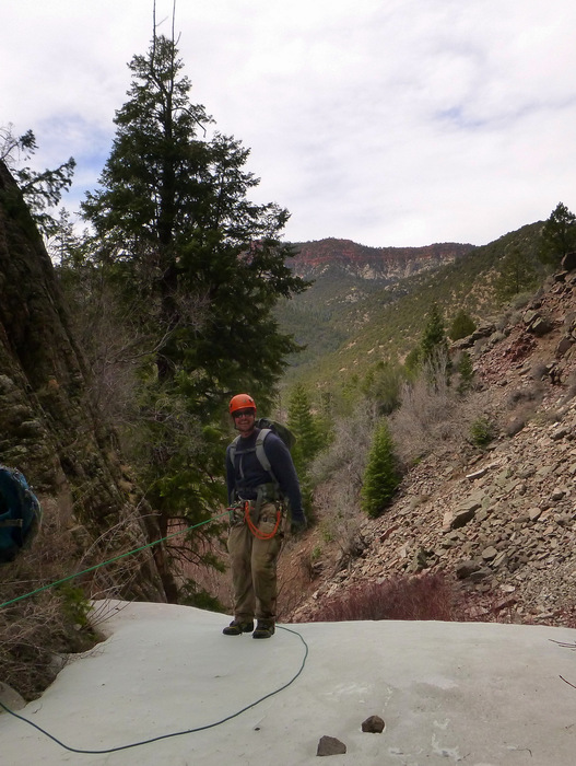 The Last Rappel over a 30 Foot Waterfall....Most took this Route and had fun with it.. 4 Rappels in all and all of them were frozen, but this one had a Drier Option DCR and a couple of us opted for it instead....I was done with the slipping and sliding....
