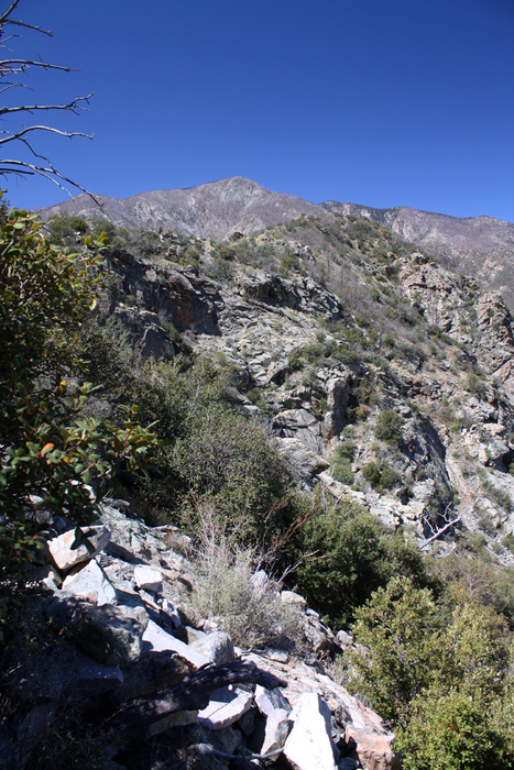 The off trail hiking goes from easy to a blood inducing bushwhack approaching the base of the peak. This is looking west from where I'd just come.