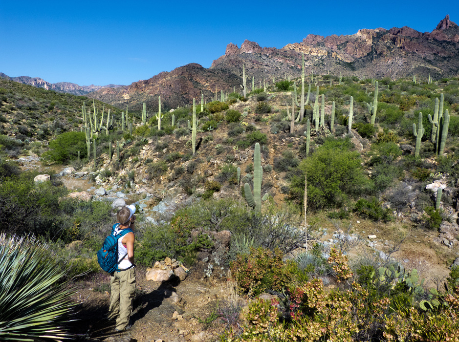 Kelly trying to find the other arch. Come to find out she was looking at the one we were trying to point out to her rather than the other one we assumed she had seen on the left. You can see JF Trail continuing across the canyon, turn left or Swestish here to Randolph Canyon.