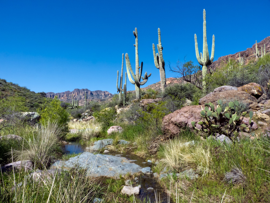 a fun section with lots of grass and bedrock and water and saguaros and a view at the end.