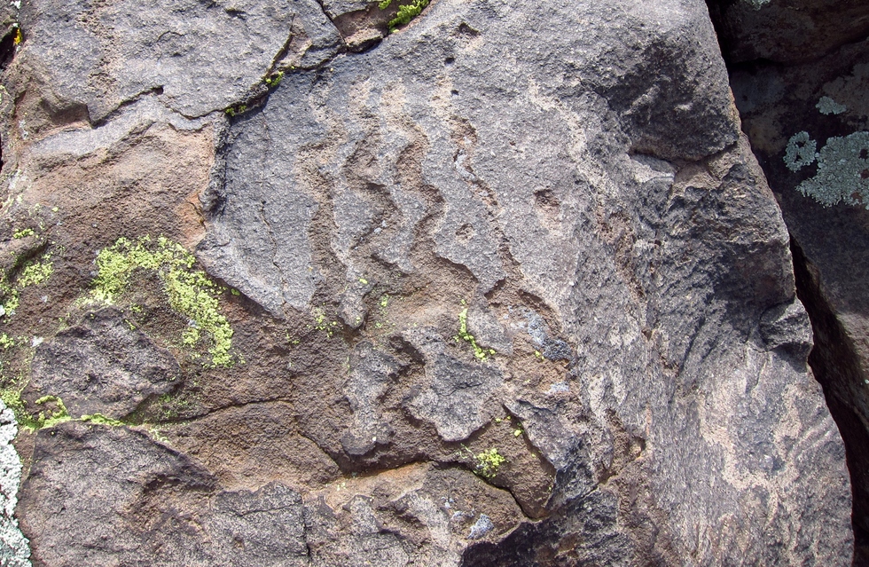 There are quite a few old indistinct glyphs in the area. These squiggles are interesting but the overall pattern is lost.