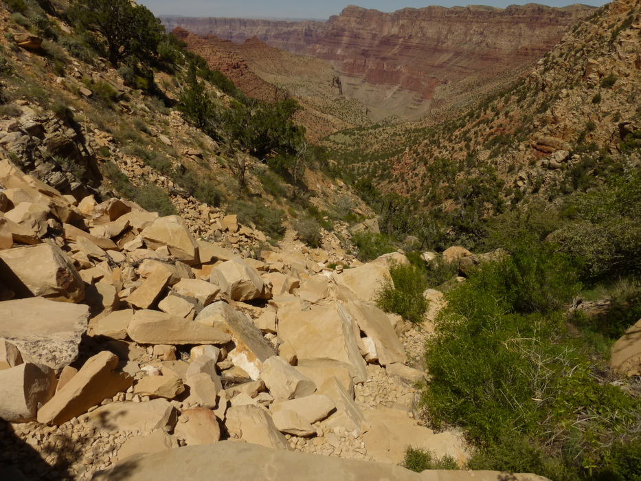 It's a steep & rocky descent the first mile or so. You hike along the Butte Fault as you descend to the river.