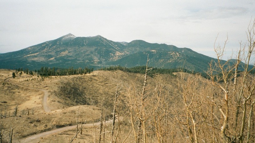 The San Francisco Peaks Seen from Eldens Summit taken March 2002. Notice the lack of snow.