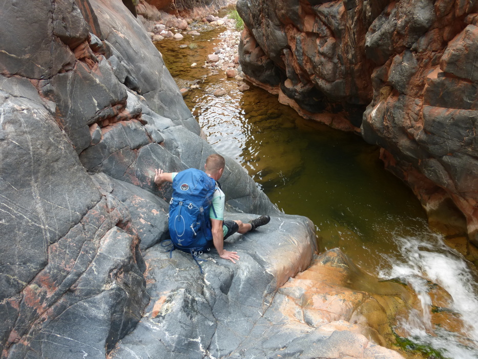 My favorite spot! You basically slide into the pool. The rock is very slick and we were soaked. We shot down into the pool. Good fun!