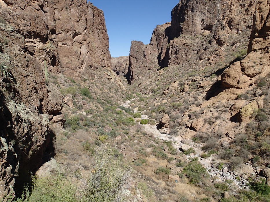 120' above the wash will be the closest I'll get. Although I may have dropped the first 40' safely, I really doubted I'd be able to climb back out. With the temperature already 105° and being alone, reluctantly I began the long ascent.
