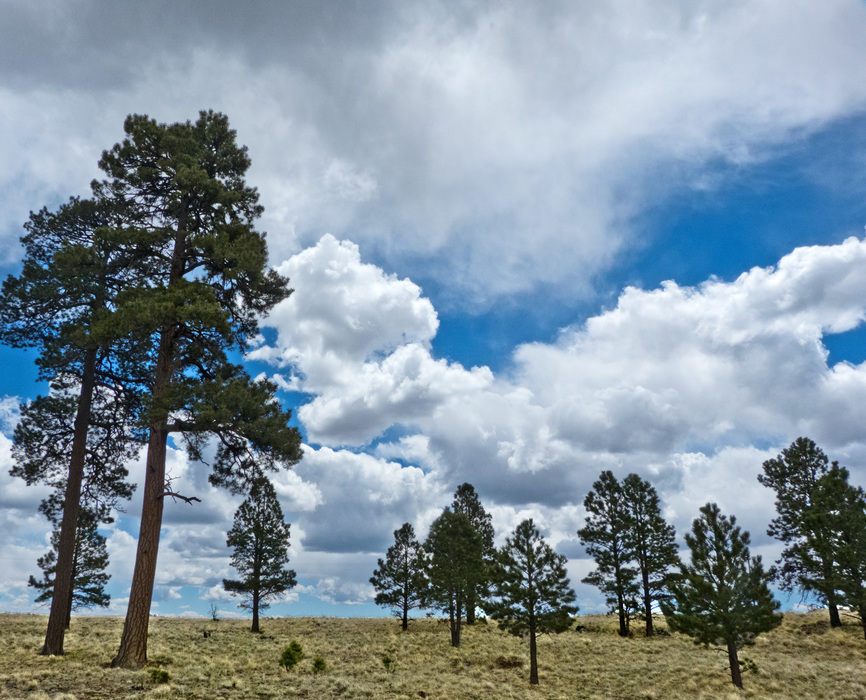billowy clouds and healthy pines at different stages. This is just off to my right.