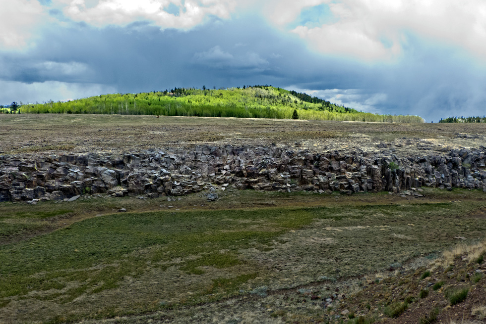 Looking across the dry Benny Creek toward Boardshack Knoll as the sun was trying to shine on it for a fleeting moment.