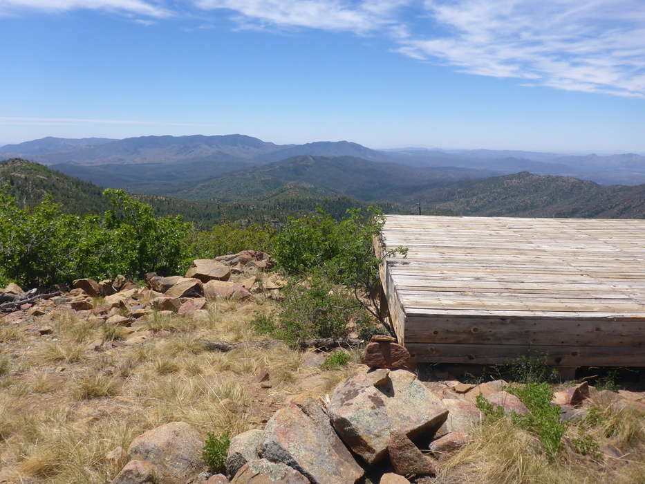 Summit of Mount Union, looking south-southeast. The wood platform is not a party deck, it is a helipad.