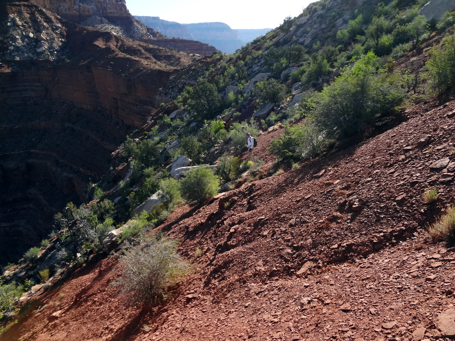 Dave heading over to the Brahma/Zoroaster saddle on the Hermit Shale Highway.