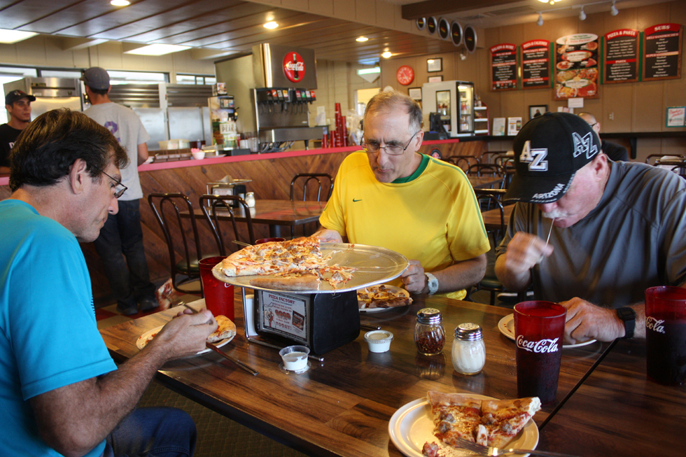 dinner at Pizza Factory in Lone Pine the evening before the hike