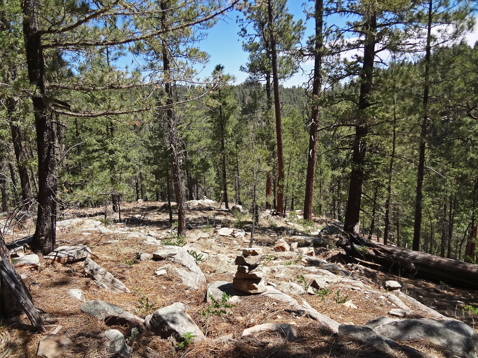 Some rock cairns placed for part-of the "off trail" hiking route down to intersect Barbershop Canyon but it is highly recommended to